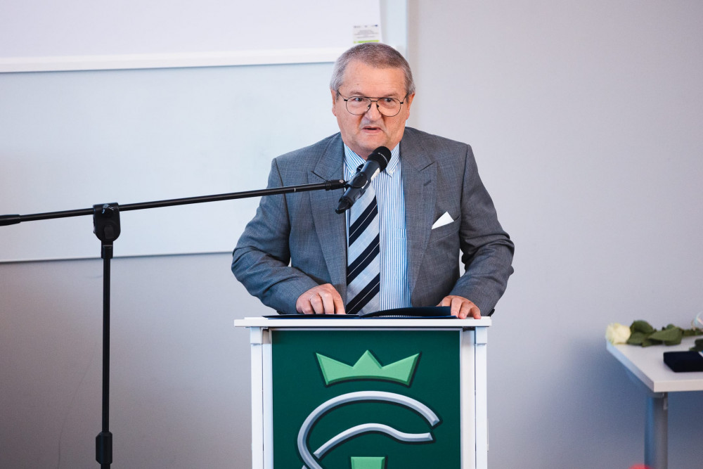 Na koniec wydarzenia prof. Ewelina Król wręczyła Prezesowi firmy KAWA.SKA Marianowi Kawczyńskiemu medal 50-lecia Uniwersytetu Gdańskiego za wieloletnie wspieranie finansowe wydziału w organizacji corocznych szkół letnich i innych inicjatyw ku lepszej edukacji studentów. - Z wydziałem zaczęliśmy współpracować jeszcze przed jego utworzeniem, czyli trochę więcej niż 30 lat temu. Obiecuję, że będziemy współpracować nadal, przez kolejne dekady - zapowiedział Marian Kawczyński.