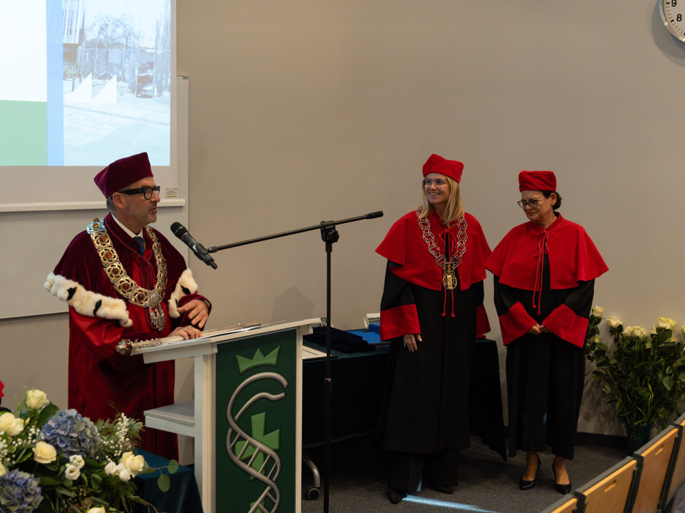 Rektor GUMed prof. dr hab. Michał Markuszewski przywołał osobiste wspomnienia. - To dla mnie zaszczyt i prawdziwa przyjemność móc powiedzieć, że znam Panią Profesor od wielu lat. Byłem młodym adeptem nauki, kiedy pierwszy raz miałem okazję poznać prof. Ewę Łojkowską na jednej ze szkół letnich biotechnologii na Kaszubach. Już wtedy robiła na mnie swoją naukową postawą wrażenie. Była wyróżniającą się badaczką trójmiejskiego środowiska. Bardzo się cieszę, Pani Profesor, i jeszcze raz gratuluję tego zaszczytu - podkreślił prof. Michał Markuszewski.