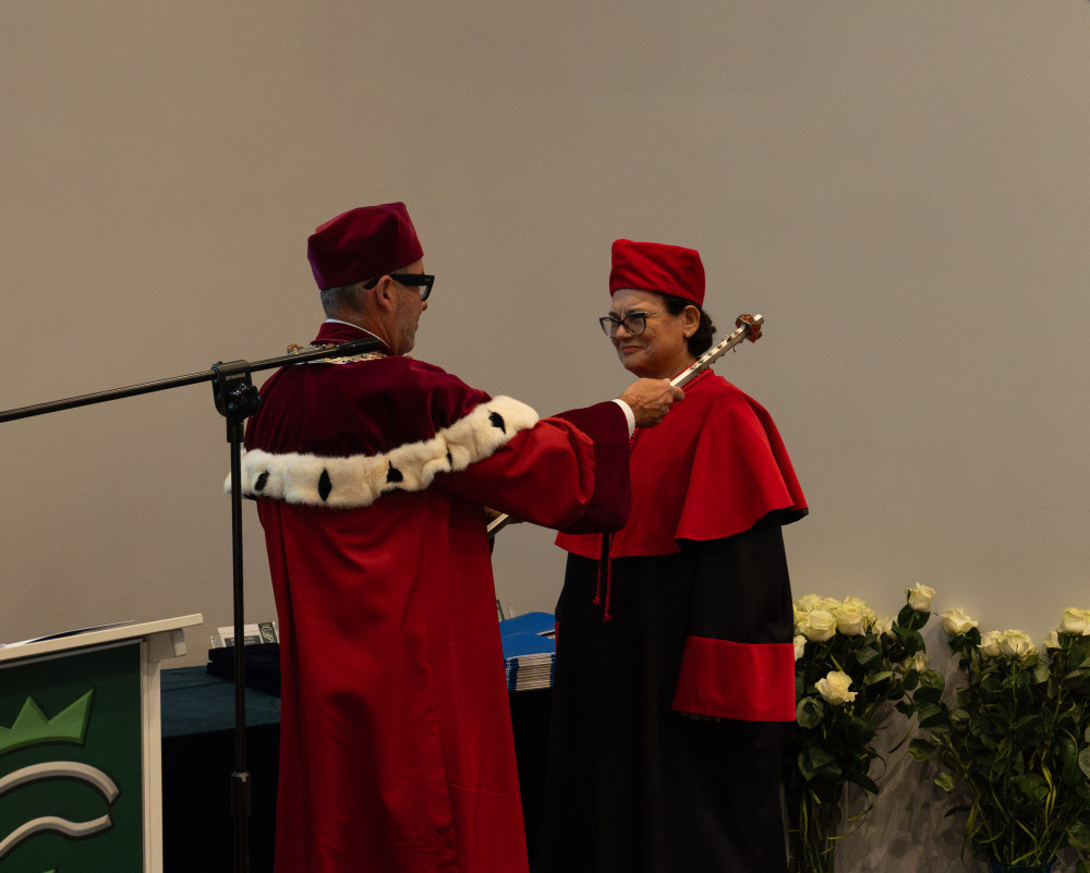- Niezmiernie cieszę się, że w poczet laureatów godności honorowej naszej uczelni dołącza właśnie Pani Profesor, nie tylko wybitna uczona, ale znakomita organizatorka świata akademickiego, niestrudzona orędowniczka równości i równego traktowania naukowczyń. Znakomita popularyzatorka wiedzy. Pani Profesor, z całego serca gratuluję - mówił Rektor UG prof. dr hab. Piotr Stepnowski.