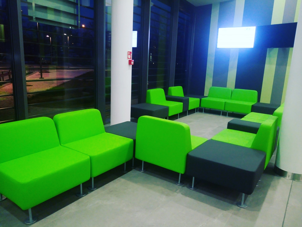 - Budynek posiada windę o odpowiedniej wielkości dla przewozu wózków inwalidzkich, wyposażoną w informator głosowy.